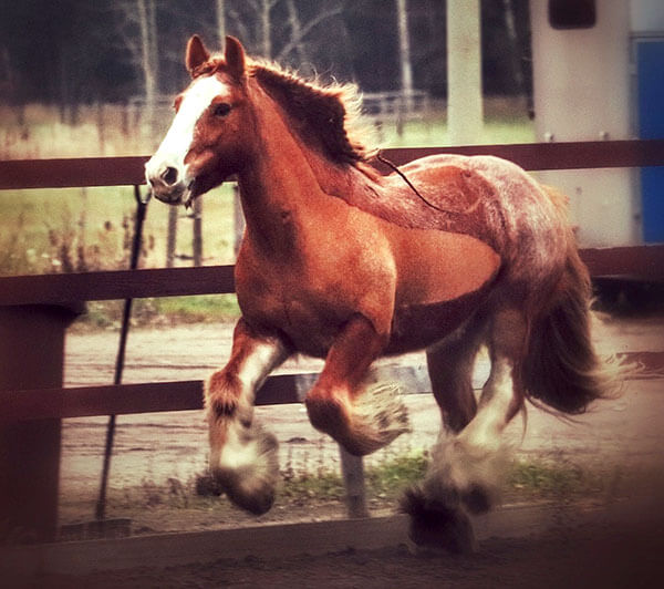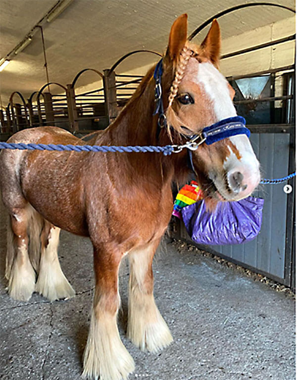 Usko er en Irish Cob vallak født i 2012. Han ble diagnostisert med PSSM1 i en alder av 5 år men utviklet først symptomer i 2022.