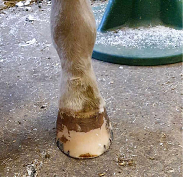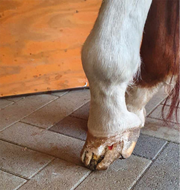 I 2020 måtte dyrlegen dessverre skjære en stor del av den ene hoven vekk pga. sykt horn.
