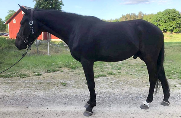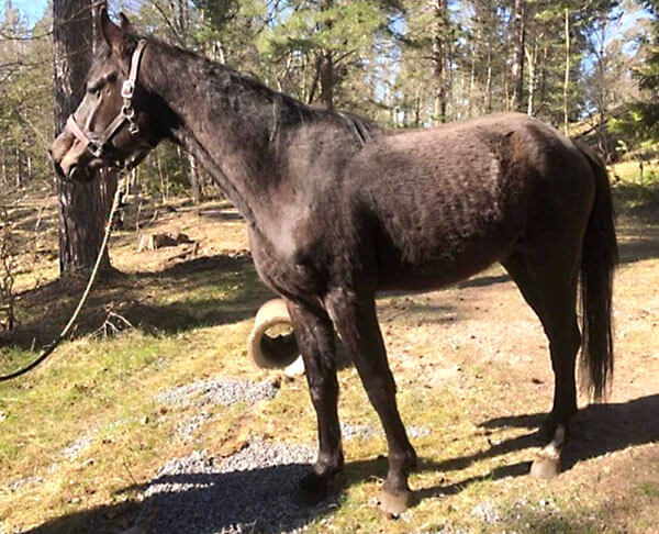 I begynnelsen av mai ble denne 3 år gamle unghesten tatt med hjem på stallen. Han var svært tynn da han kom, og fikk derfor fri tilgang på høy som starten på reisen mot ridehest.
