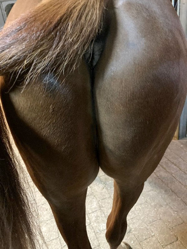 Efter kontakt med vår fôrrådgivning, kunne det konstateres at hesten fik for lite grovfôr, og for mye kraftfôr med høyt stivelsesinnhold i forhold til størrelsen.