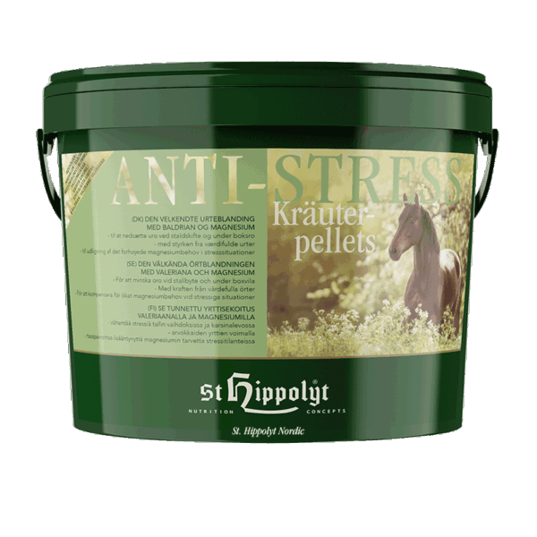Anti-Stress Kräuterpellets er en gjennomprøvet urteblanding som styrker hestens psykiske stabilitet i stressede situasjoner. Bruken av beroligende urter innen hestefôring har for lengst bevist sin verdi ved nervøsitet og uro.