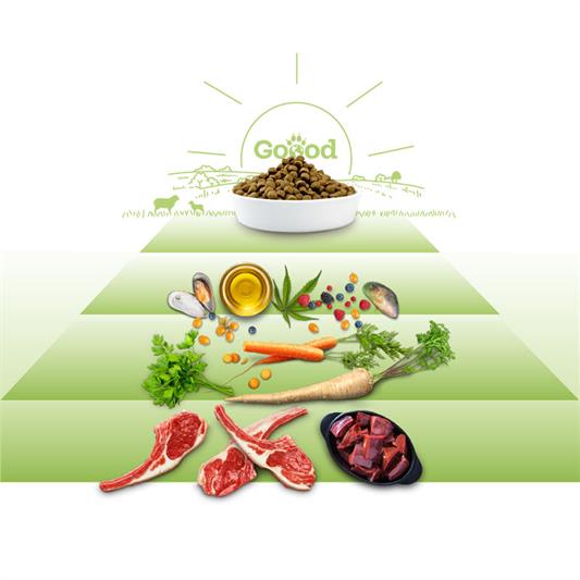 Våre lam kommer fra sertifisert frittgående oppdrett, noe som gir fôret en spesielt høy kvalitet med høyt proteininnhold. Grønnsakene og hampen fra Alpene kommer fra lokale bønder og inneholder viktige næringsstoffer. Denne fôrblandingen med grønnleppede blåskjell styrker bein og ledd, noe som bidrar til et sunt og aktivt hundeliv.