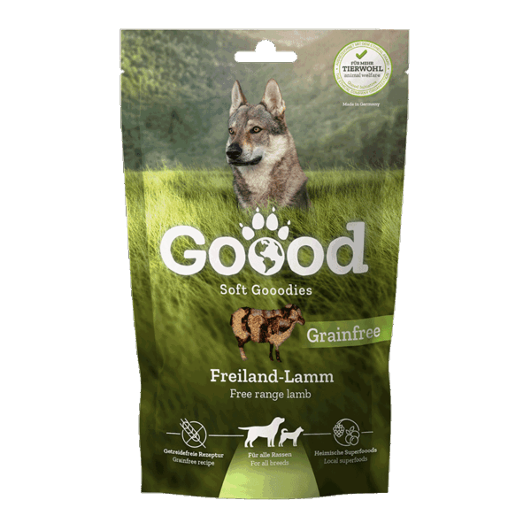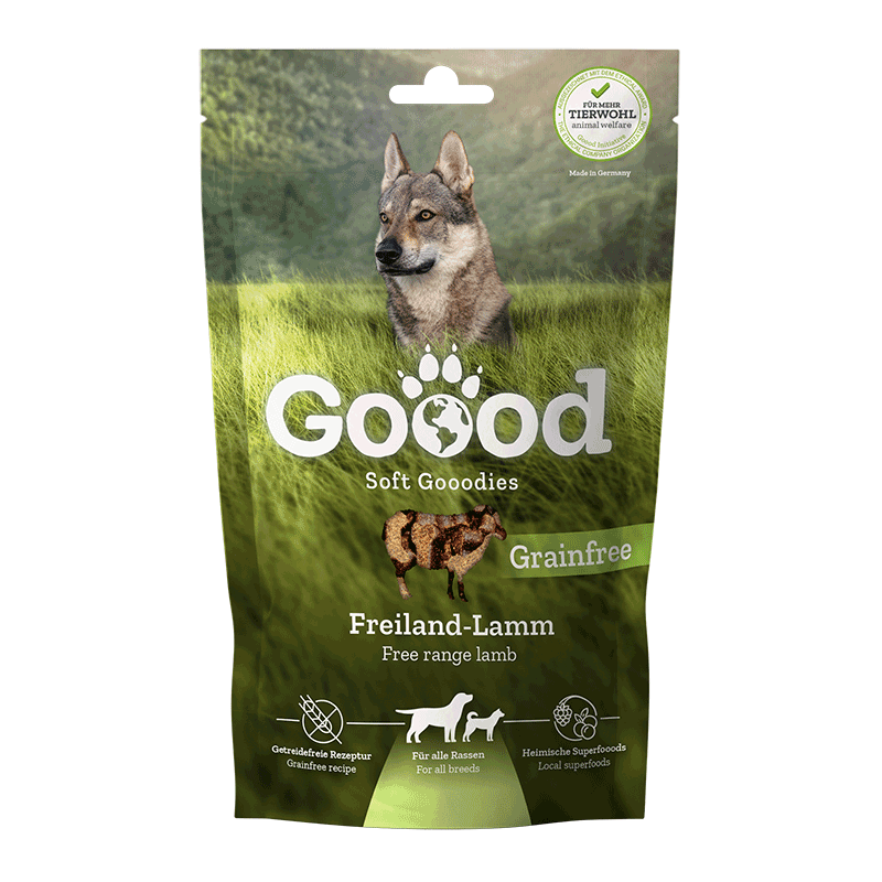 Våre Soft Gooodies er myke godbiter med en balansert blanding av kjøtt eller fisk, lokale grønnsaker og de viktige Goood vitalstoffene. Emballasjen er resirkulerbar og innholdet er 100 % klimanøytralt. Den naturlige oppskriften på våre hundesnacks inneholder verken sukker eller kunstige farge- eller smakstilsetninger, er helt uten konserveringsmidler og kan nytes selv av sensitive hunder. Våre Soft Goodies er fantastisk myke og lett fordøyelige. Hunden din vil elske dem.