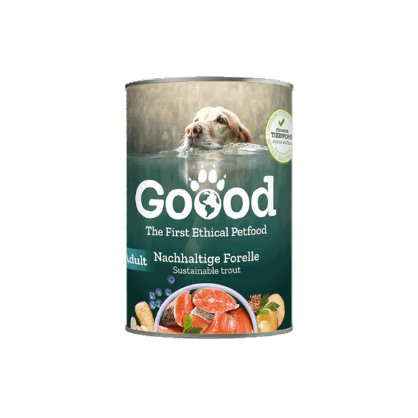Den smakfulle og sunne ørreten til vårt Goood-hundfôr kommer fra bærekraftig fiskeoppdrett. Så tilsetter vi grønnsaker og persille dyrket i nærområdet vårt. Den kornfrie sammensetningen tåles godt av sensitive hunder. Omega-3 og omega-6 fettsyrene fra fisk og linfrø er bra for hud og pels.
