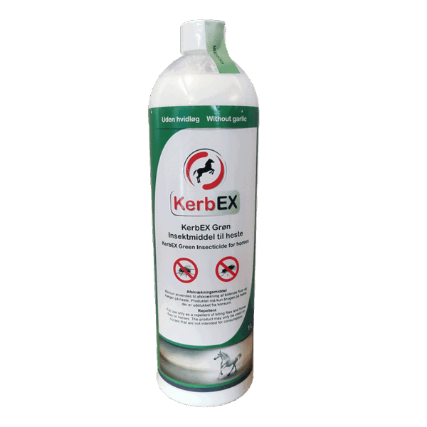 KerbEX rød og grøn er omfattet af bekendtgørelsen om bekæmpelsesmidler som insektmiddel (Afskrækningsmiddel) og er godkendt. De indeholder det aktive stof Icaridin, som har bred effekt mod insekter. KerbEX Spezial, Specialolie, er et hudplejeprodukt, som ikke kræver godkendelse. Regelmæssig brug forbedrer produkternes virkning. Øreflappen kan behandles for at beskytte hestens øre (f.eks. mod små sorte fluer) ved at påføre et tyndt lag KerbEX direkte på huden med en blød klud eller svamp. Alle hestens følsomme områder kan behandles med KerbeEX Specialolie for ekstra beskyttelse.