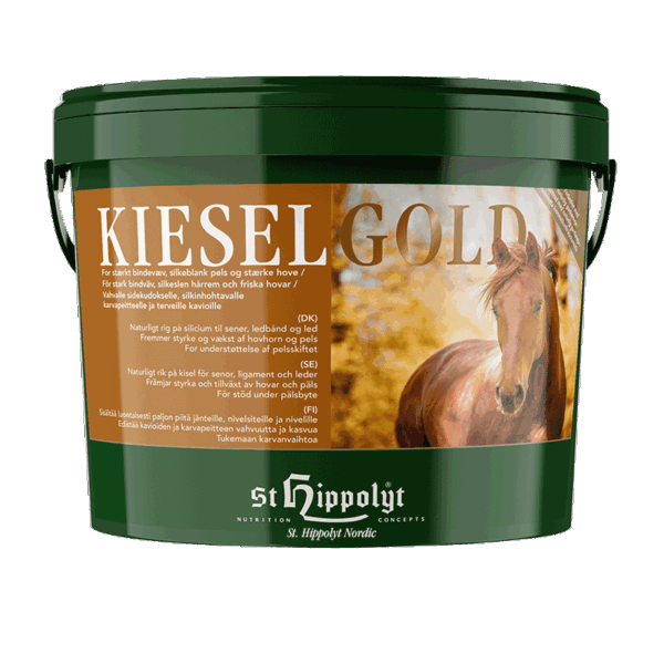 Kieselgold inneholder hovedsakelig kiselgur, et marint urnaturprodukt som ble skapt over millioner av år. Det brukes som en naturlig kilde til silisium. Silisium er en viktig byggeklosse for bindevev, sener, knokler og hovhorn.