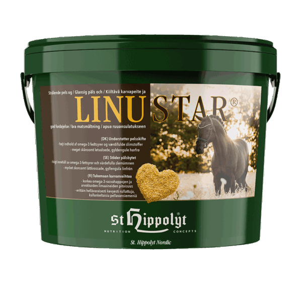 Strålende utseende Hestens vitalitet og velvære avspeiles i dens utseende. Tørr, sprukken hud, flass eller en matt og glansløs pels kan være tegn på mangel på spesifikke næringsstoffer.  Utover sporstoffer kan det være essensielle fettsyrer. Den høye konsentrasjonen av omega-3 fettsyrer (alfa-linolensyre) og omega-6 fettsyrer (linolsyre) i LinuStar® støtter hud og pels på en naturlig måte.