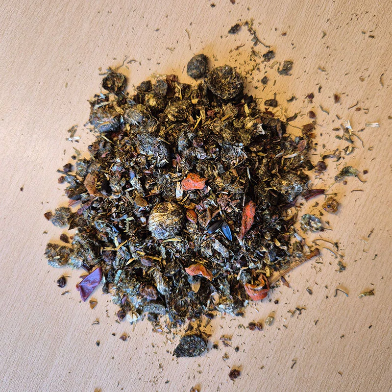 Urteblandingen, der indeholder blandt andet fennikel, kamille og rosmarin, er udvalgt for den traditionelle anvendelse i hestefoder og bidrager til produktets gode smag og understøttelse af fordøjelsen.